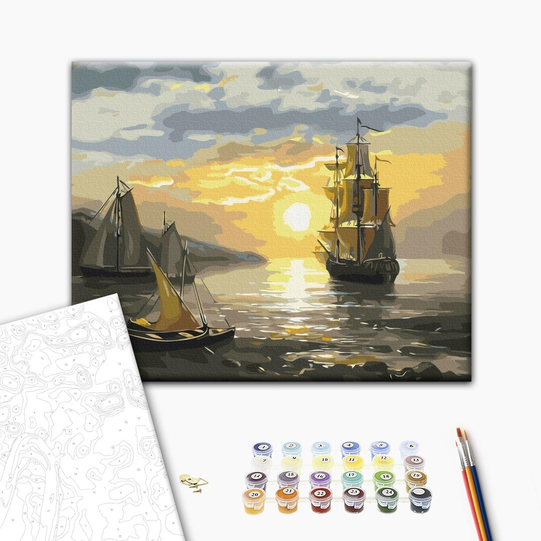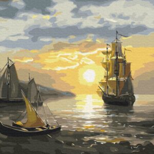 Malowanie po numerach Żaglówka na zachodzie słońca