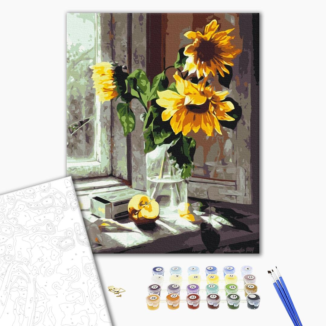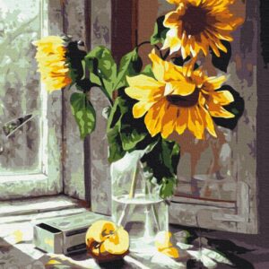 Malowanie po numerach Bukiet słonecznika na oknie