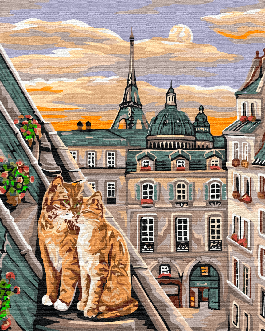 Malowanie po numerach Czułość kotów w Paryżu