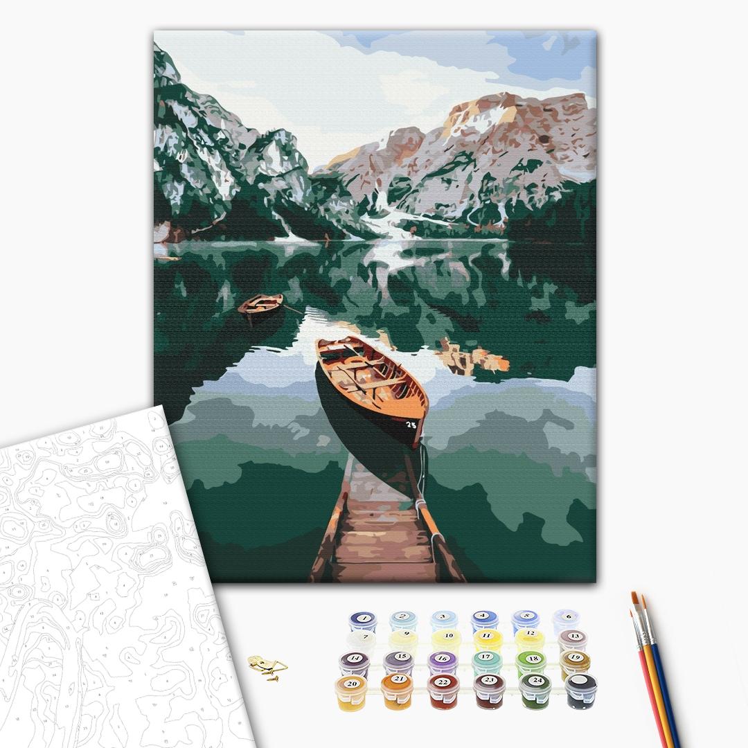 Malowanie po numerach Łódź na lustrzanym jeziorze