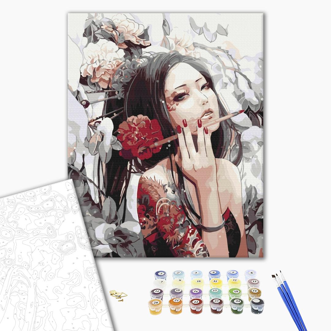 Malowanie po numerach Dziewczyna z tatuażem smoka