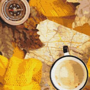 Zrelaksuj się i odstresuj dzięki naszemu zestawowi Paint by Numbers z pogodnym, jesiennym flatlayem podróżnika. Pozwól swojej kreatywności płynąć i doświadcz uspokajających korzyści płynących z malowania podczas tworzenia pięknego arcydzieła. Idealny do relaksu i uważności.