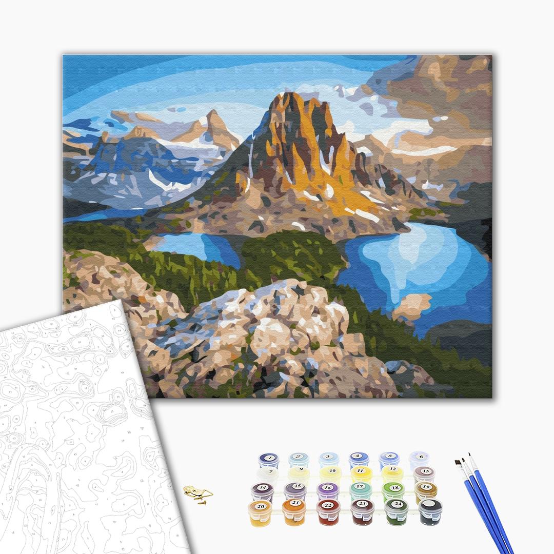 Malowanie po numerach Jeziora w pobliżu skał góry