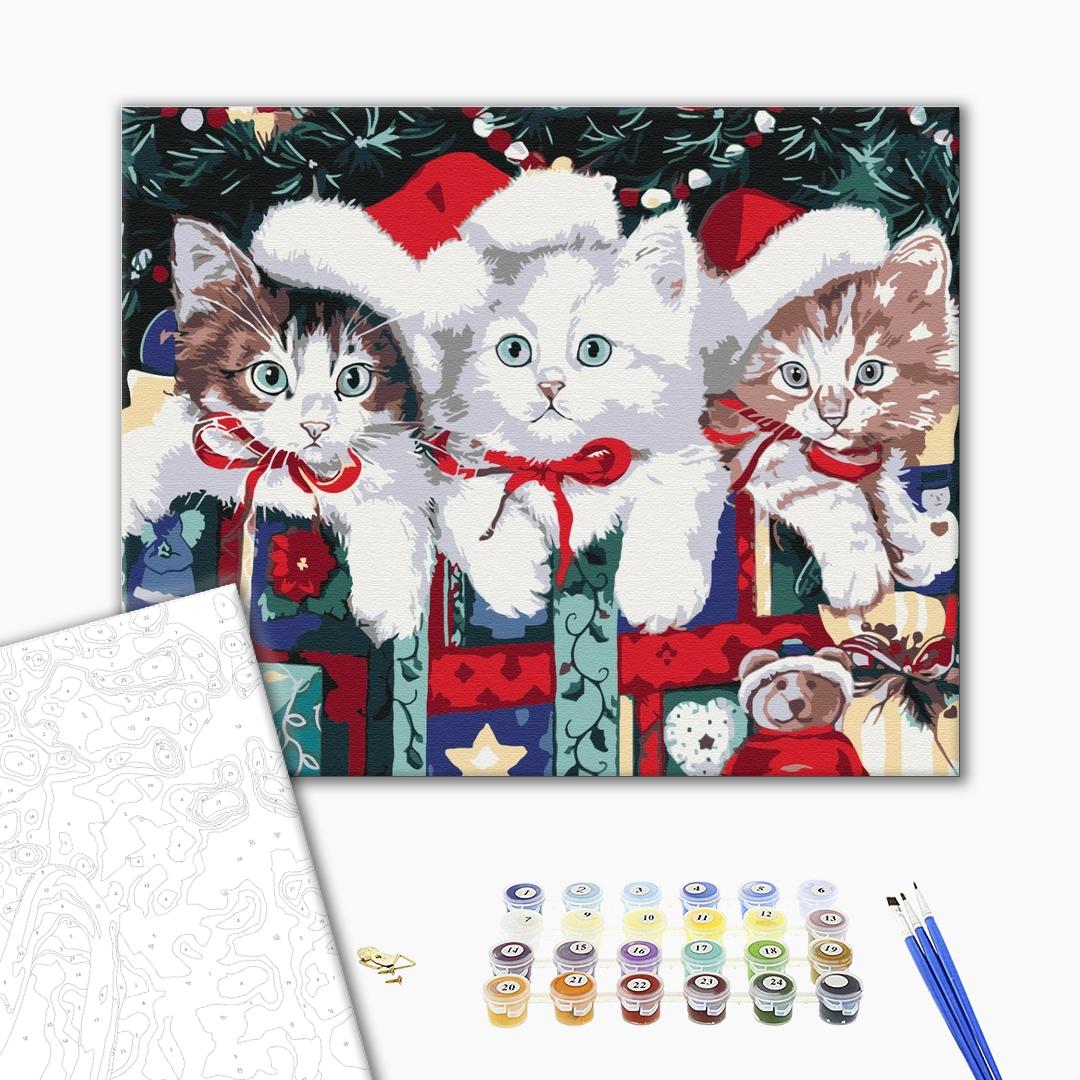 Malowanie po numerach Kocięta pod choinką (Kocięta z prezentami)