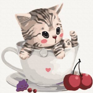 Malowanie po numerach Kot w filiżance