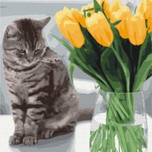 Malowanie po numerach Kot z tulipanami