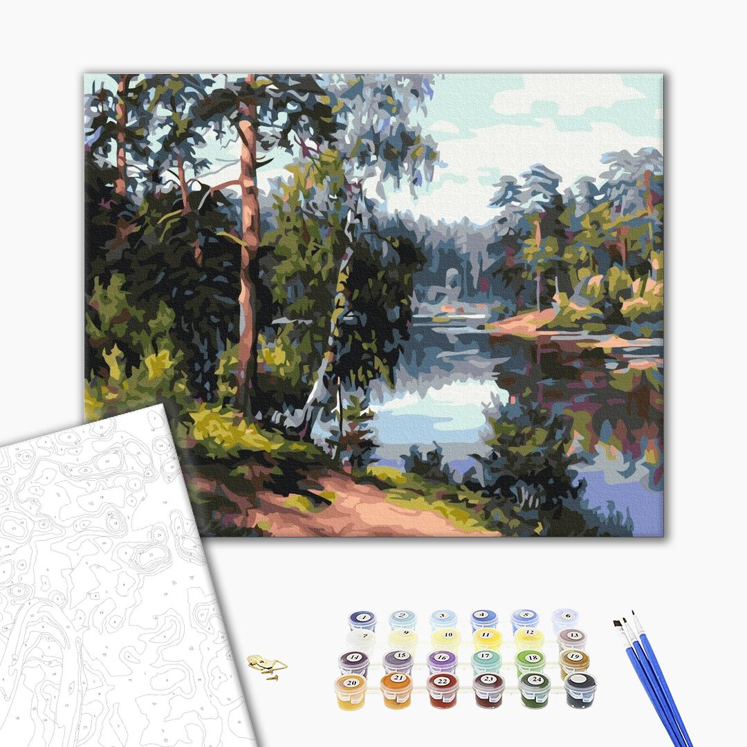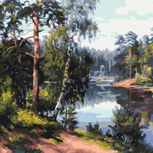 Malowanie po numerach Malownicze jezioro w lesie