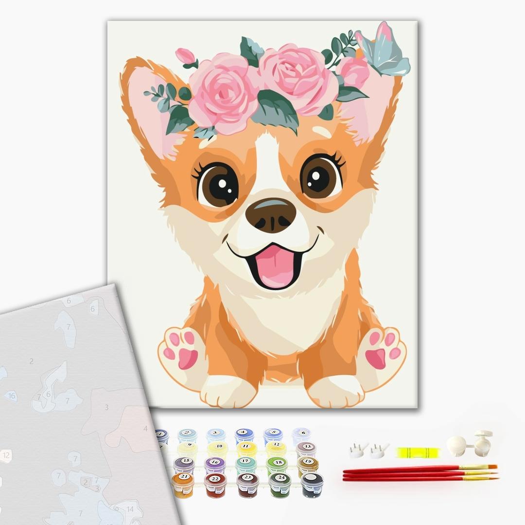 ilość Malowanie po numerach Premium Corgi w wieńcu
