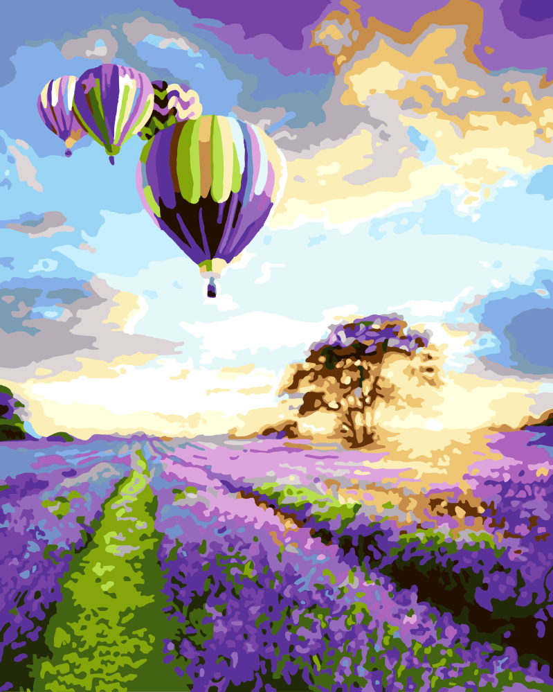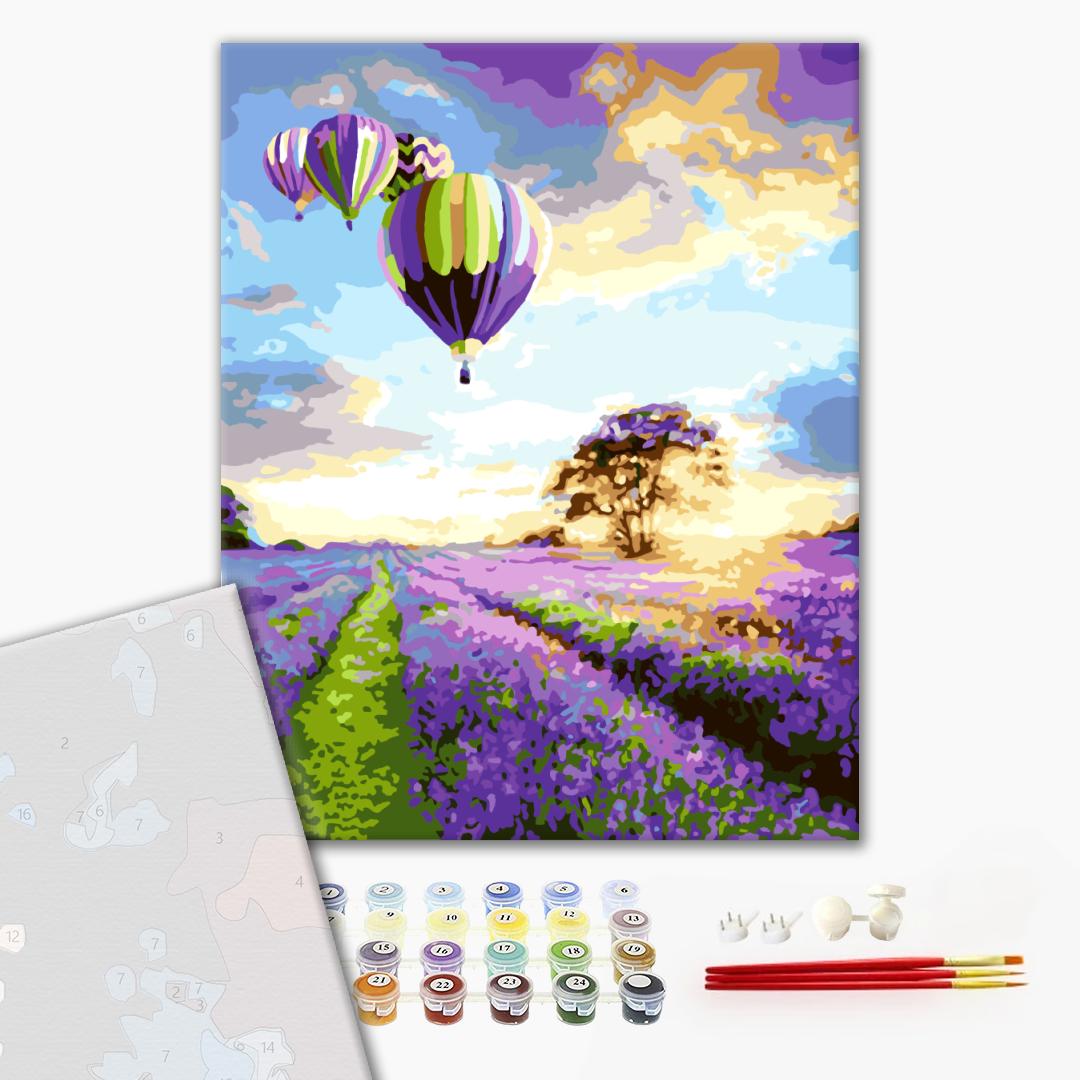Malowanie po numerach Premium Lot nad polem lawendy