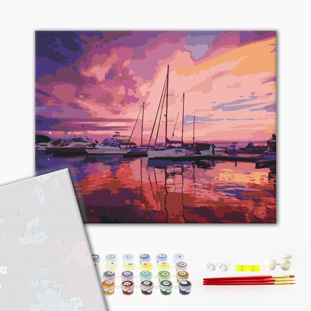 ilość Malowanie po numerach Premium Pink sunrise at the yacht club