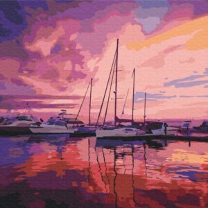 Malowanie po numerach Premium Pink sunrise at the yacht club