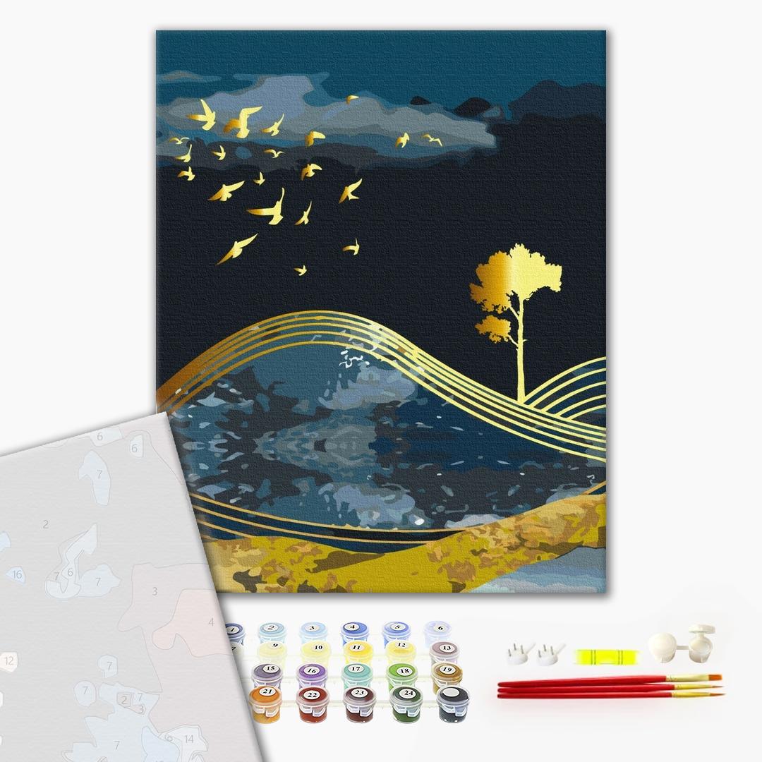 ilość Malowanie po numerach Premium Ptaki nocy ze złotą farbą
