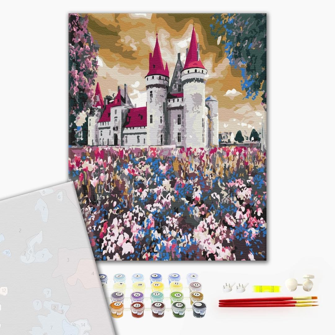Malowanie po numerach Premium Zamek w polnych kwiatach