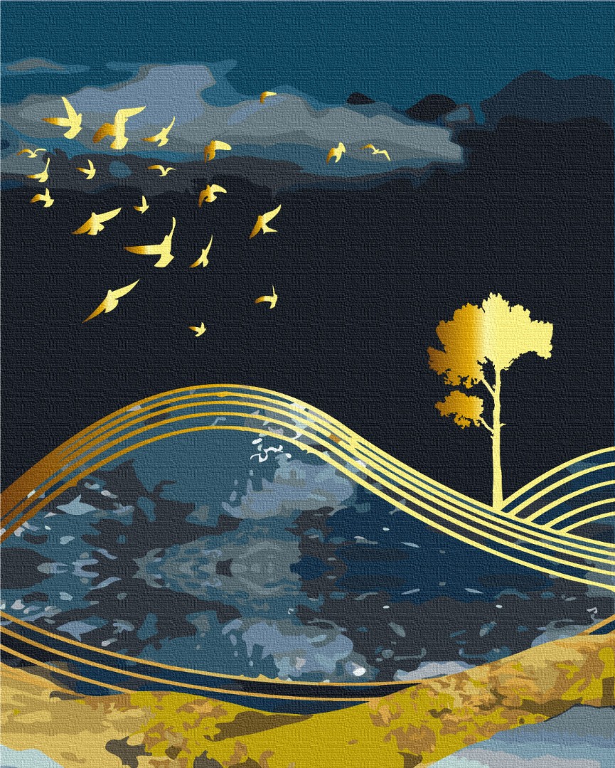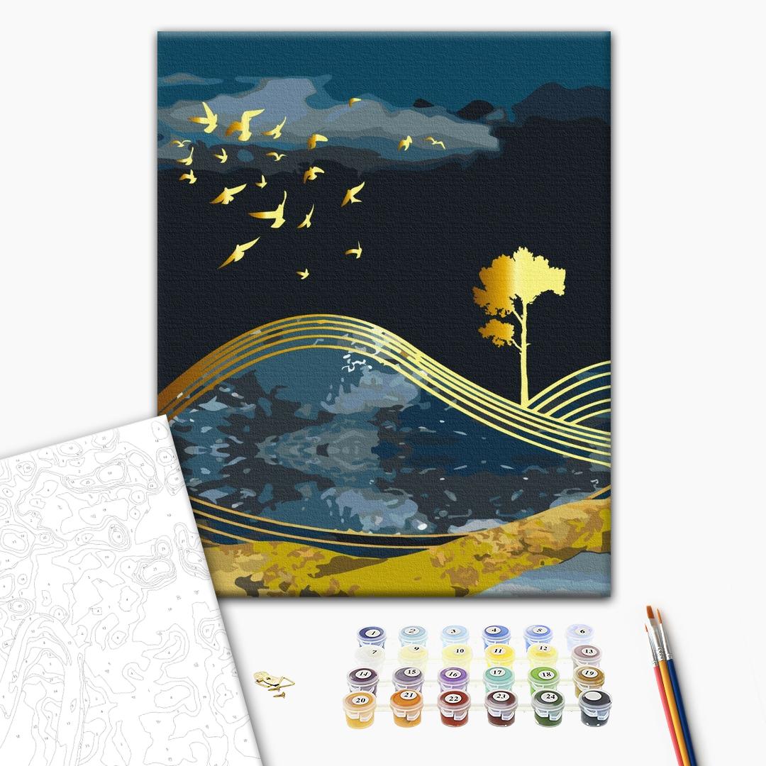 Malowanie po numerach Ptaki nocy ze złotą farbą