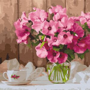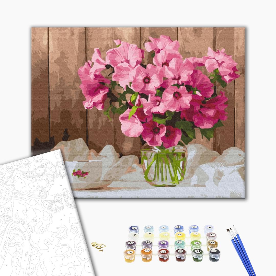 Malowanie po numerach Różowe petunie na stole