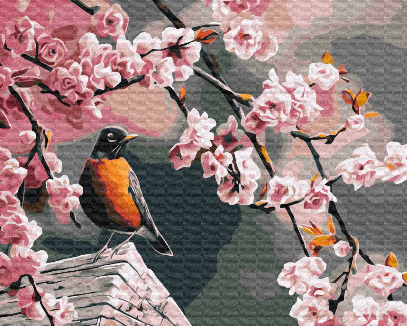 Malowanie po numerach Snegir i sakura.
