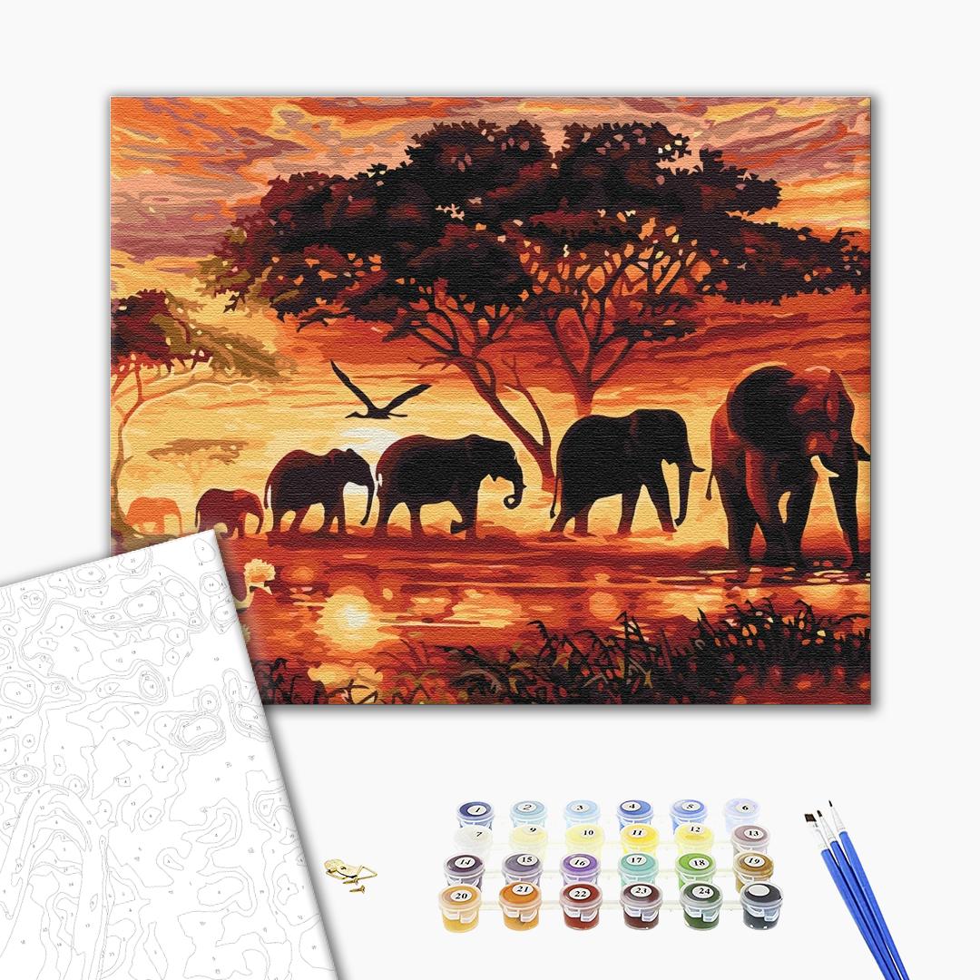 Malowanie po numerach Słonie na sawannie