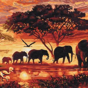 Zrelaksuj się i odpręż dzięki naszemu zestawowi Paint by Numbers przedstawiającemu piękną scenę słoni na sawannie. Pozwól swojej kreatywności popłynąć podczas malowania tej spokojnej scenerii, idealnej na uspokajające i relaksujące zajęcie. Stwórz wspaniałe dzieło sztuki, ciesząc się tak potrzebnym czasem dla siebie. Idealny zarówno dla początkujących, jak i doświadczonych artystów, którzy chcą się zrelaksować i odkryć swoje zdolności artystyczne. Zamów teraz i doświadcz terapeutycznych korzyści płynących z malowania liczbami.