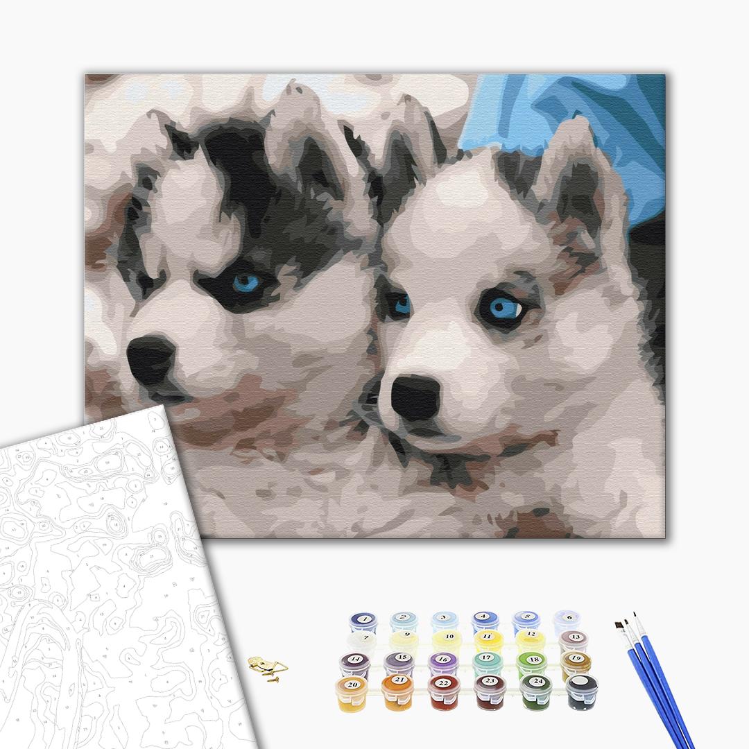 Malowanie po numerach Szczenięta Husky.