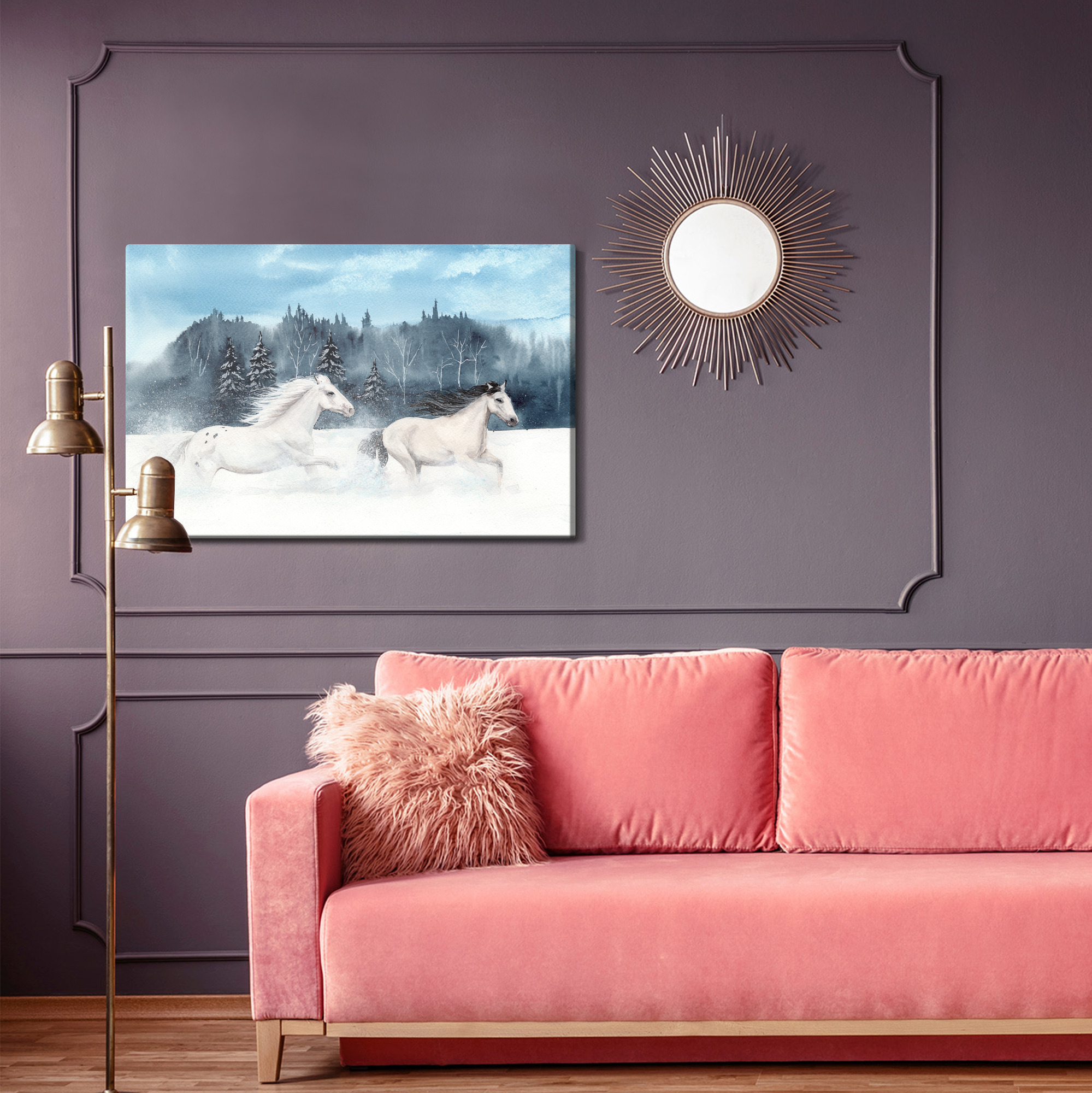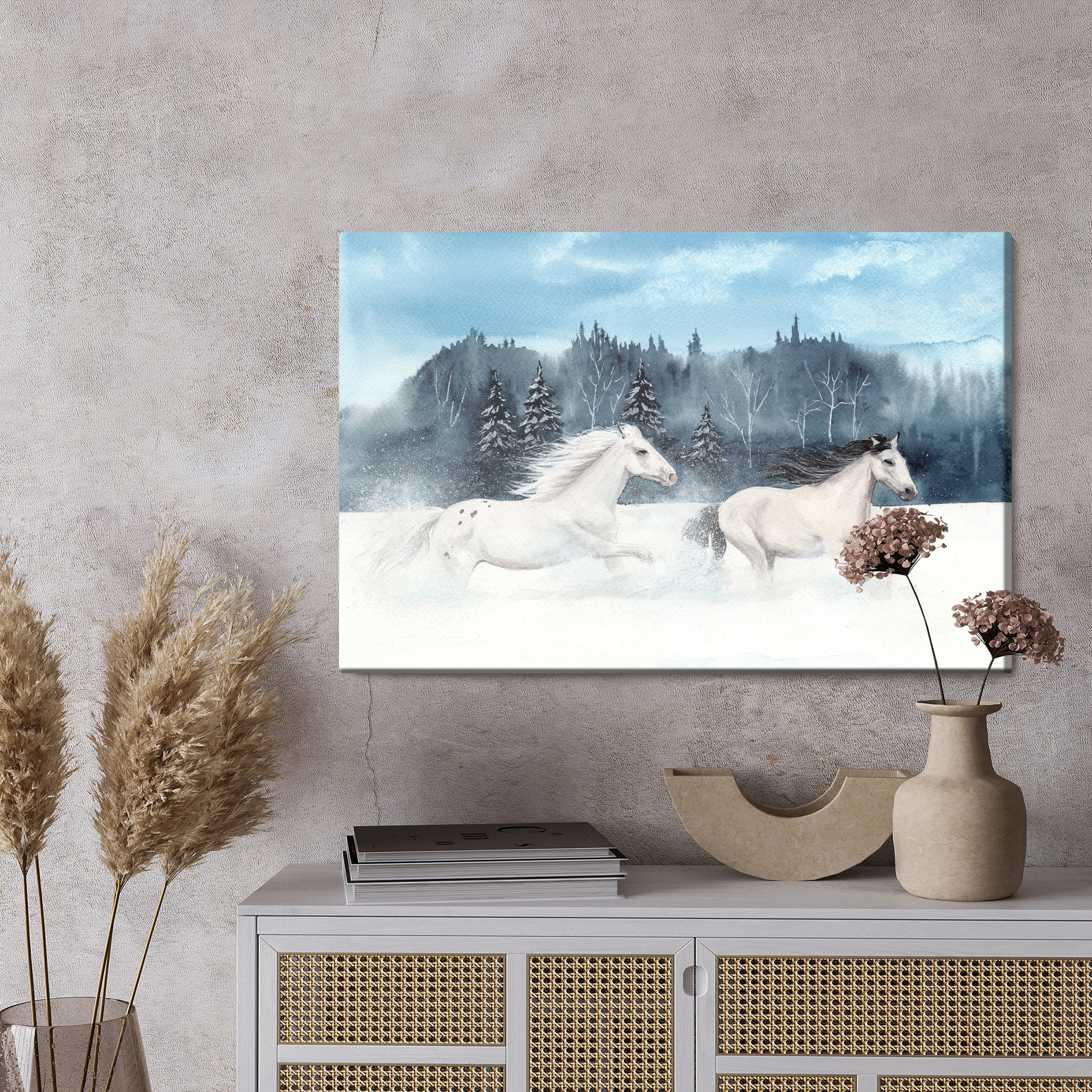 Obraz Na Płótnie Konie Galopujące W Śniegu