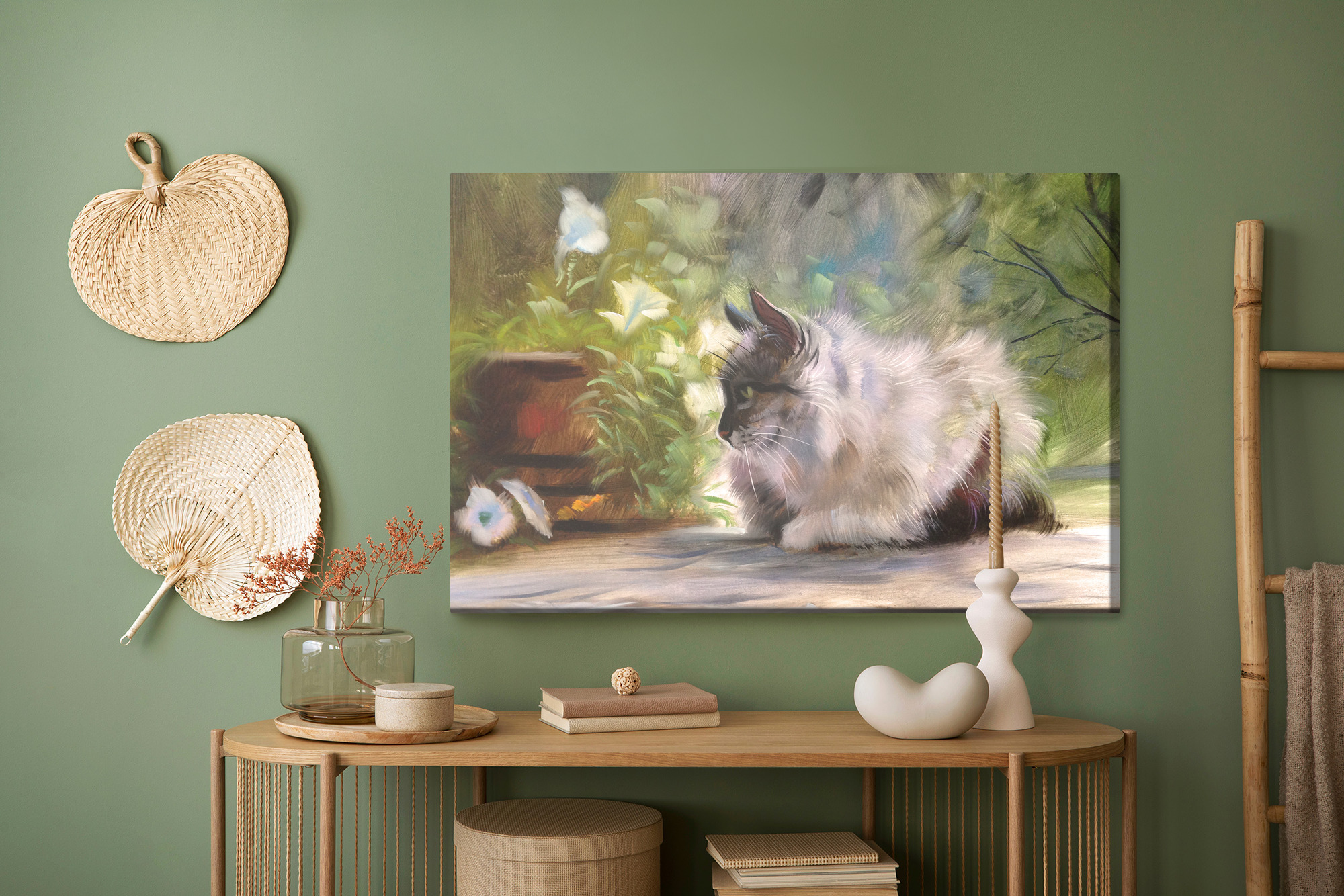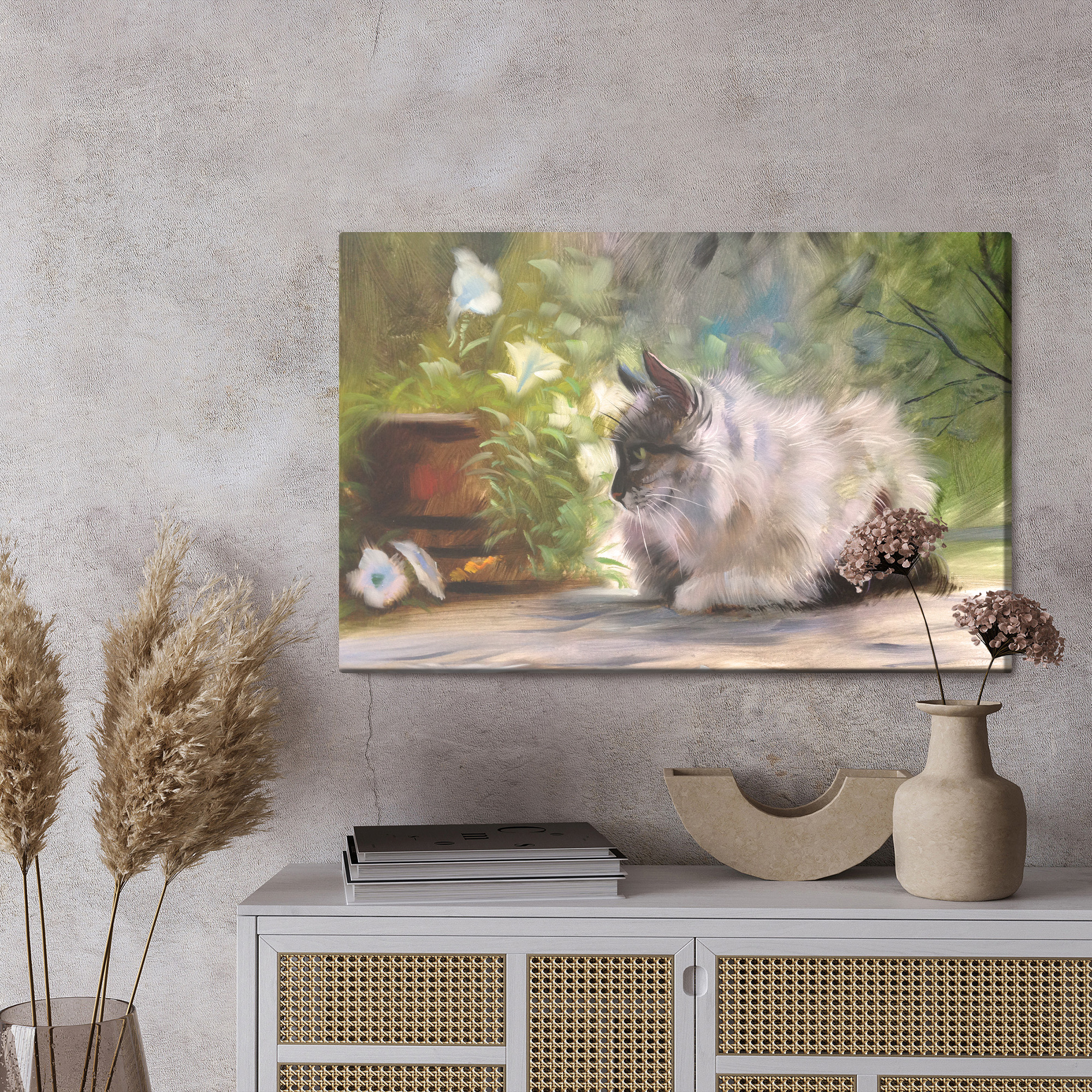 Obraz Na Płótnie Kot Wśród Zieleni Jak Malowany