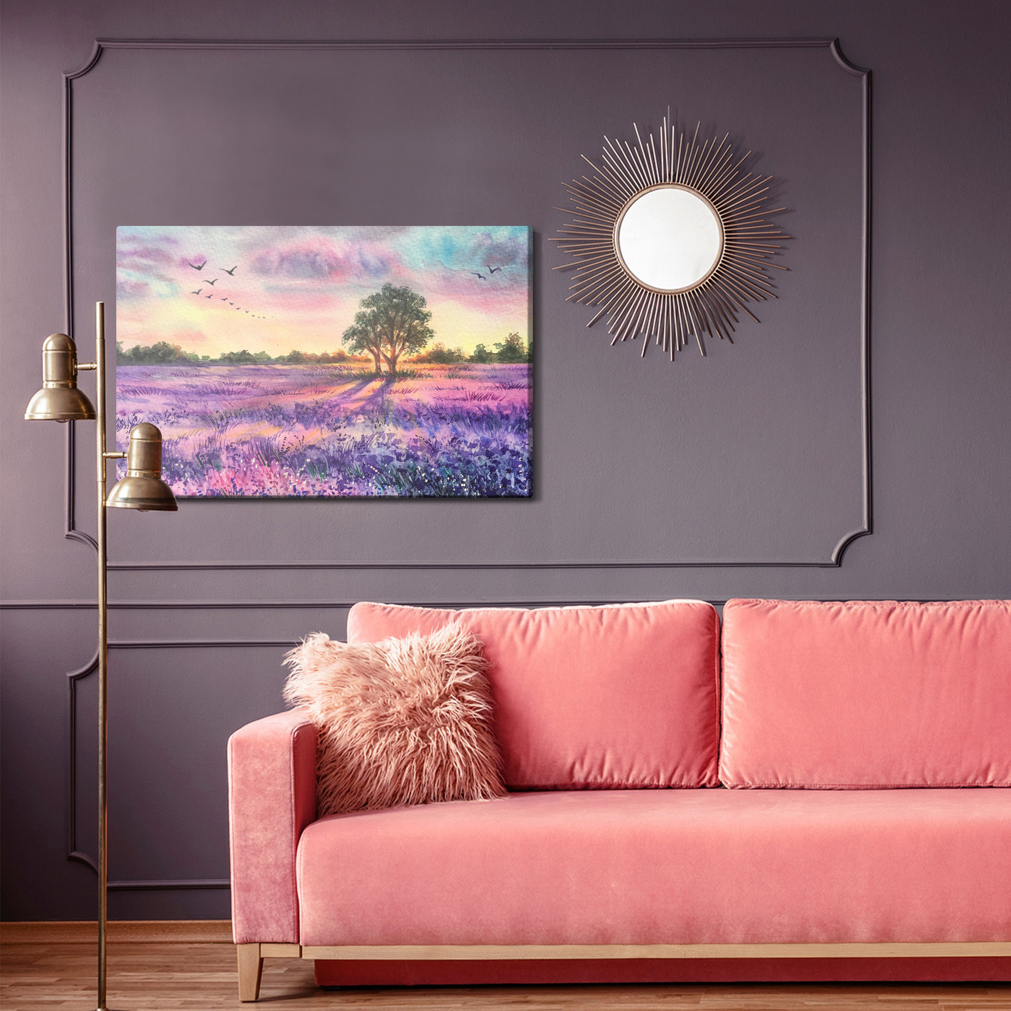 Obraz Na Płótnie Lawendowy Krajobraz Malowany Akwarelą