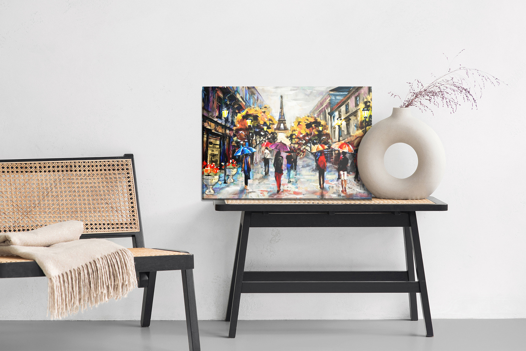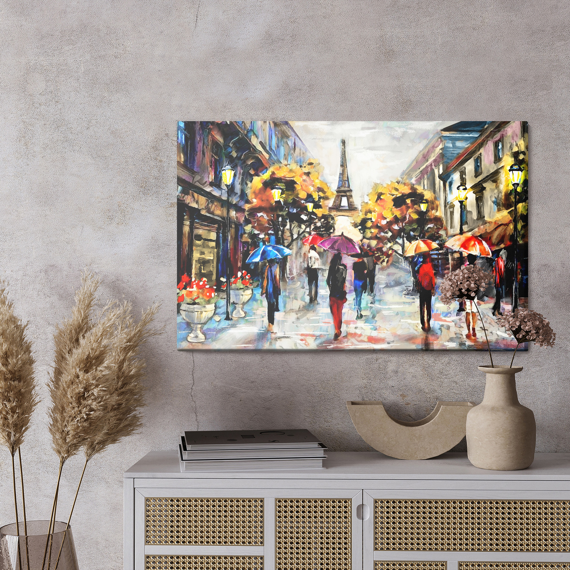 Obraz Na Płótnie Ludzie Z Kolorowymi Parasolami W Paryżu