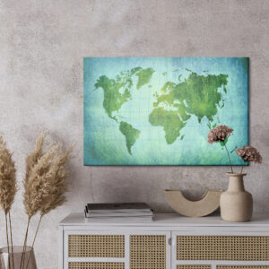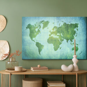 Obraz Na Płótnie Mapa Świata W Zielono-Niebieskich Barwach