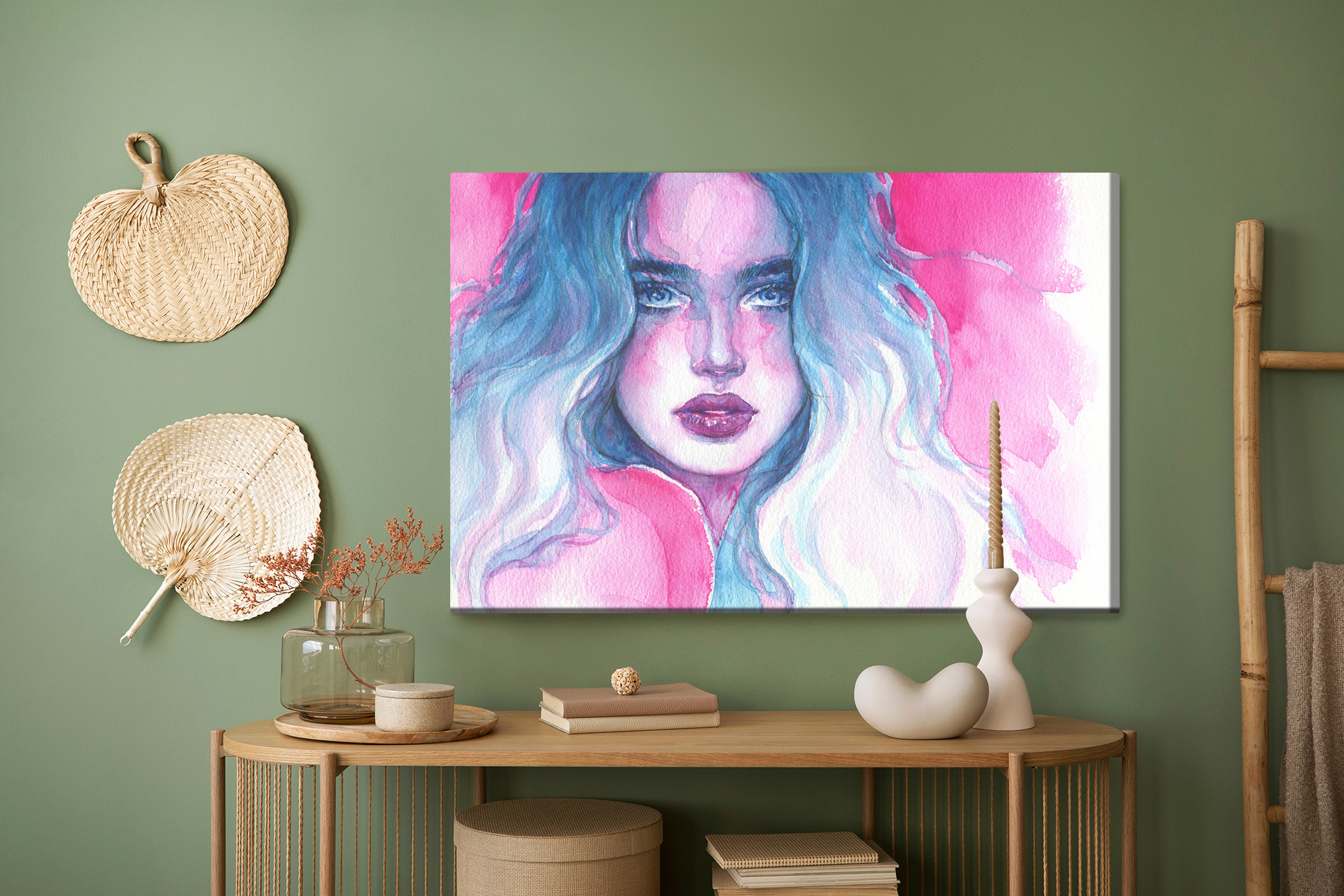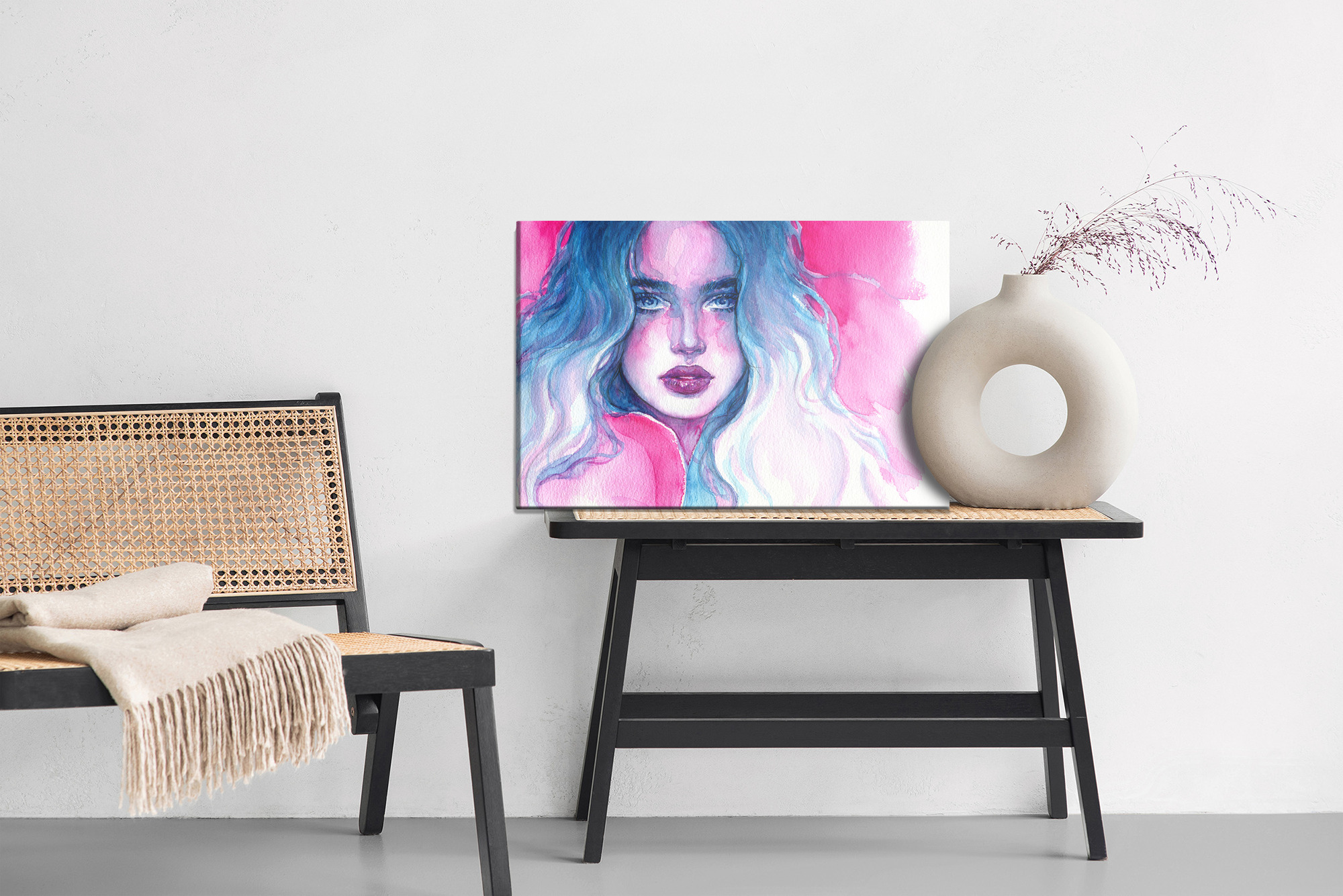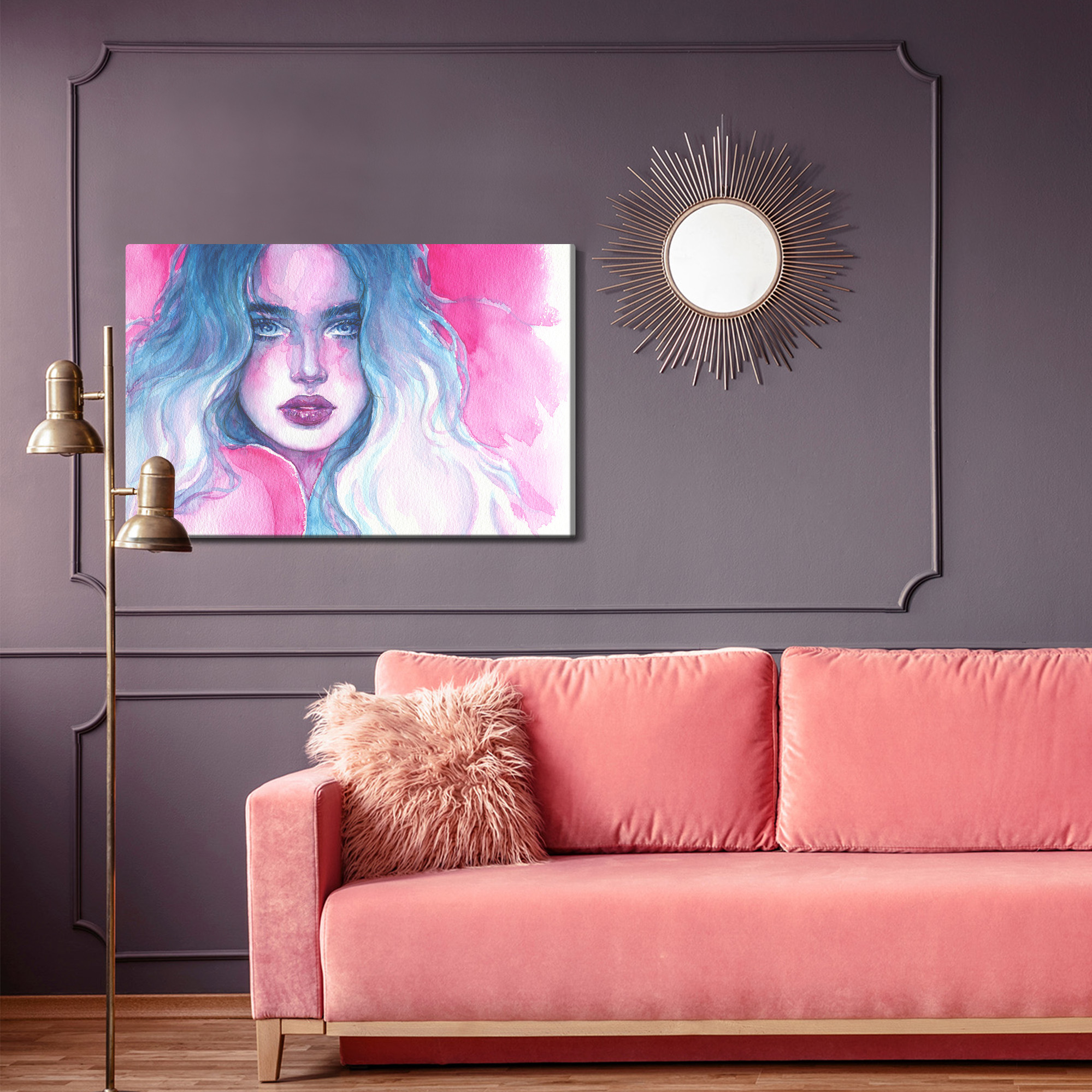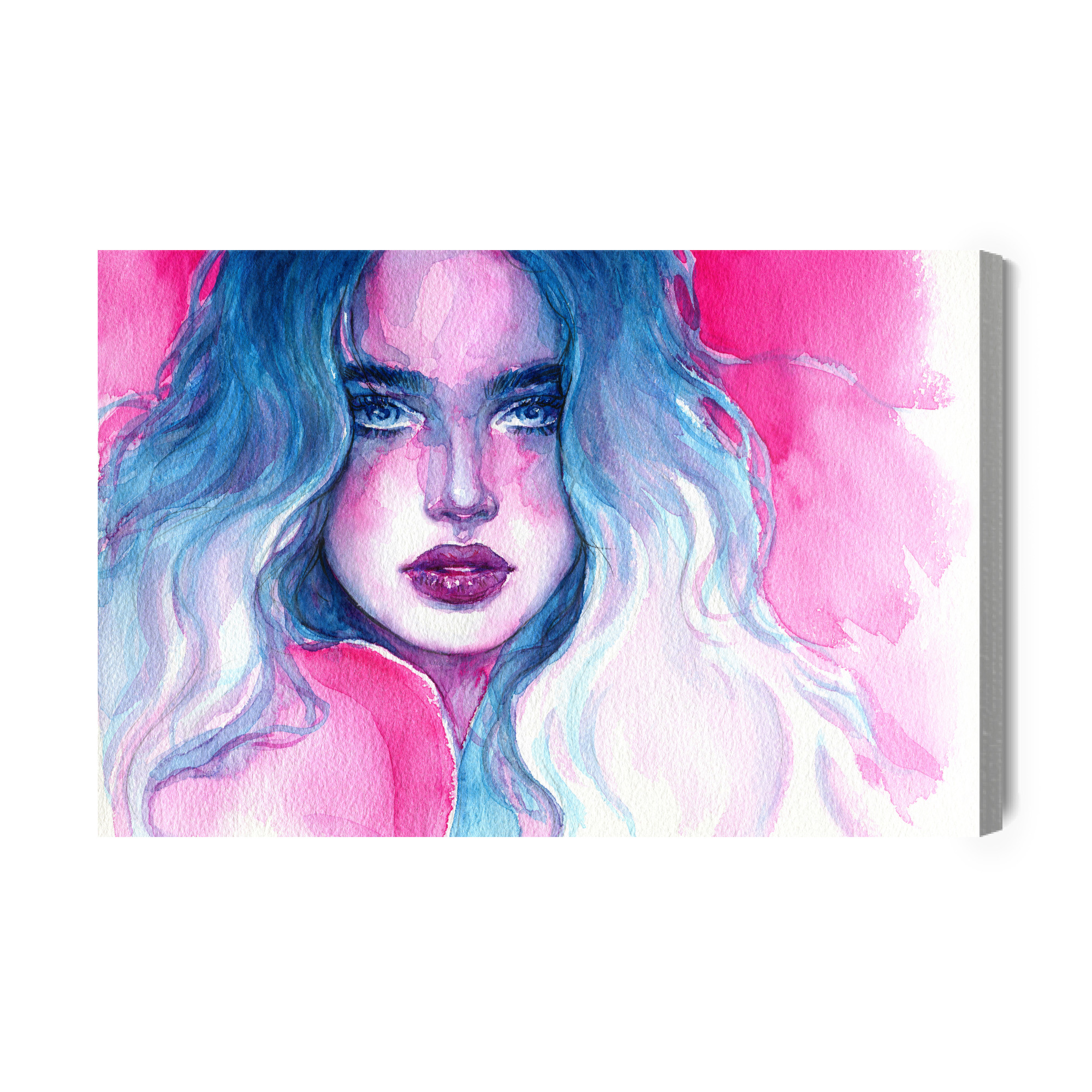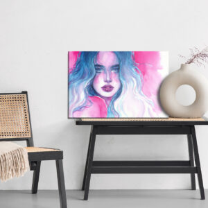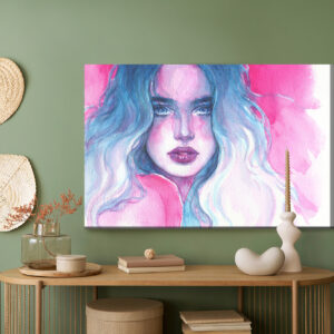 Obraz Na Płótnie Portret Kobiety W Niebiesko-Różowych Barwach
