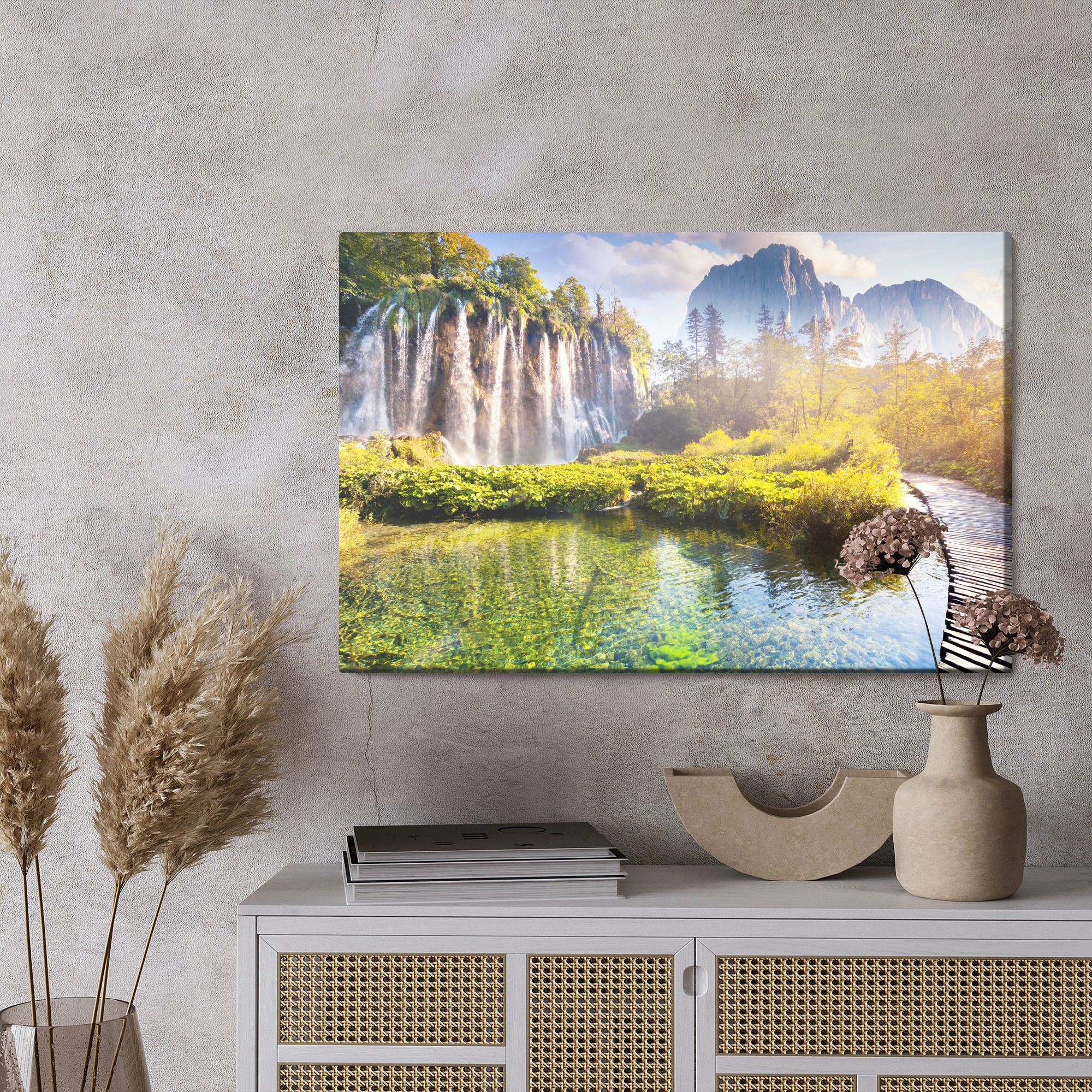 Fotograficzna jakość wydruku, wysokiej jakości płótno naciągnięte na prawdziwą drewnianą ramę. Bezpiecznie zapakowane, gotowe do powieszenia na ścianie. Drukowane w ekologicznej, bezwonnej i w pełni bezpiecznej technologii HP Latex.