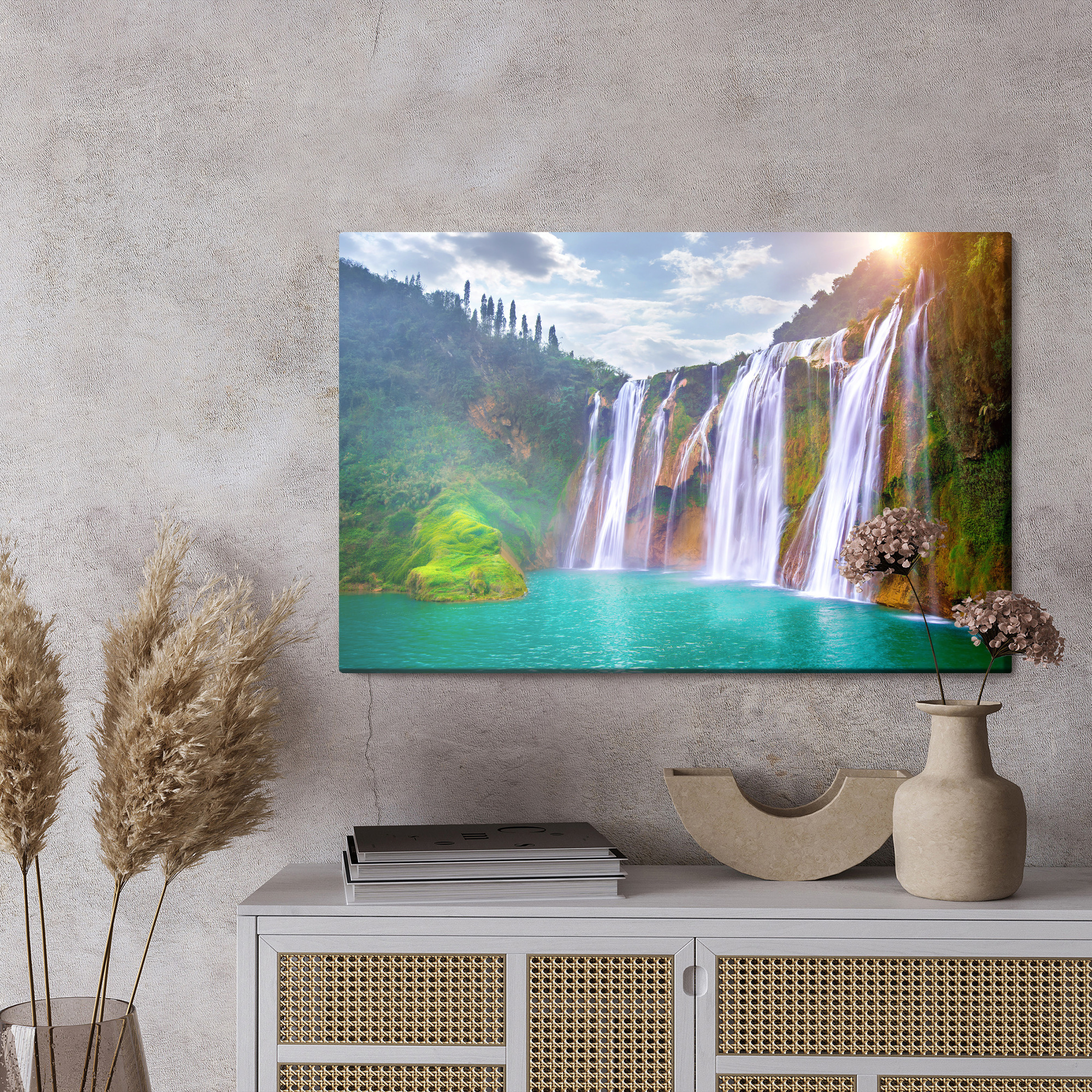 Fotograficzna jakość wydruku, wysokiej jakości płótno naciągnięte na prawdziwą drewnianą ramę. Bezpiecznie zapakowane, gotowe do powieszenia na ścianie. Drukowane w ekologicznej, bezwonnej i w pełni bezpiecznej technologii HP Latex.